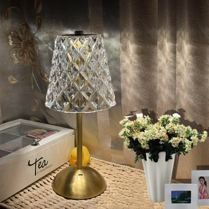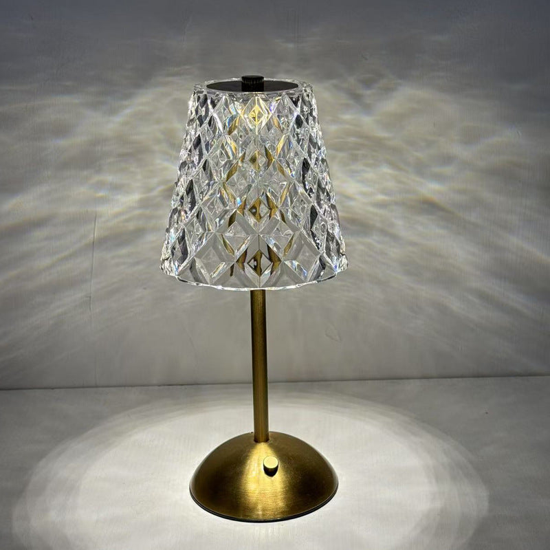 This Crystal Carved Table Lamp features a beautifully detailed crystal-pattern lampshade paired with a slim metal stand and a gold-tone base. When illuminated, the carved crystal texture creates elegant light patterns on surrounding surfaces, adding depth and luxury to any room.